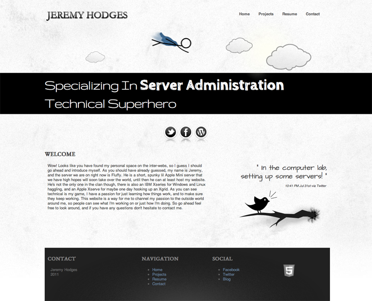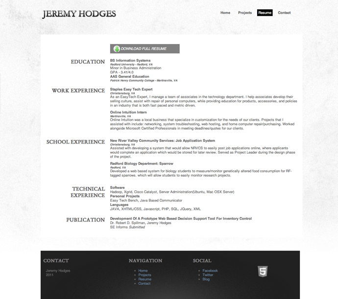 HTML5, CSS3, JAVASCRIPT, PHP, MYSQLPortfolio web site to display and highlight my brothers social accounts, work experience, and a collection of his selected projects.
